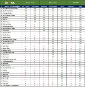 - Spinal Locks without the choke: Any type of multiple joint lock that applies pressure to the spinal column, including twisters, is prohibited in competitions.